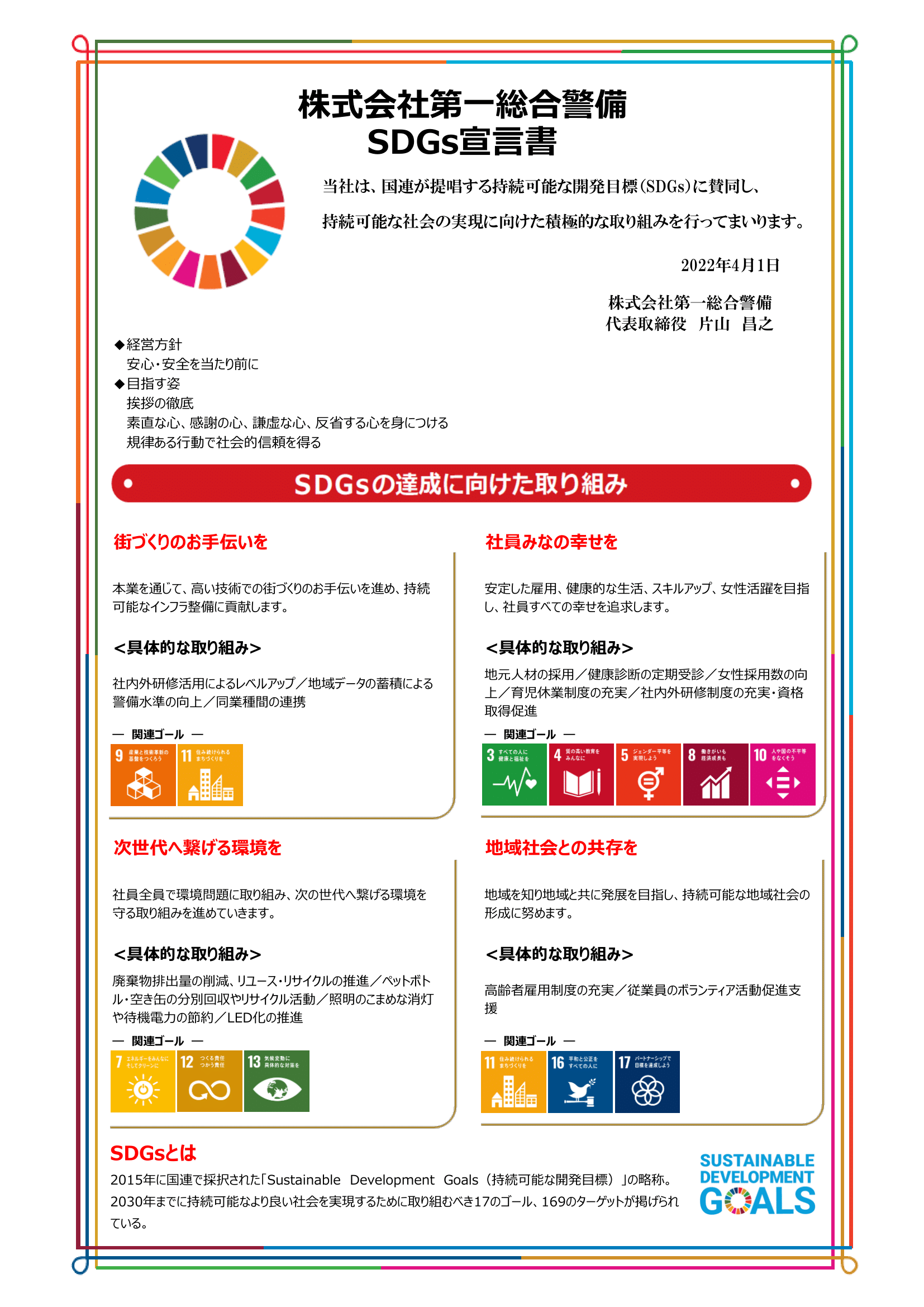 その経験を生かし退職後に、島根県の地域の安全を守るという使命感で、株式会社第一総合警備を設立させてい頂きました。